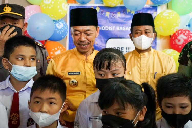 “Hari ini kita melaksanakan vaksinasi kepada anak usia 6-11 tahun di sekolah Methodist. Pagi hari ini sebanyak 200 lebih anak yang akan di vaksin,” kata Bupati.