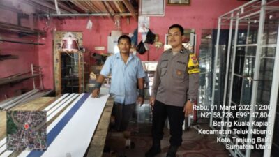 PIRNAS.COM | TANJUNGBALAI – Bhabinkamtibmas Kelurahan Sumber Sari Polsek Sei Tualang Raso Polres Tanjung Balai Sambang Warga Toko Alumunium. Rabu 01 Maret 2023 Pukul 11.45 Wib di lokasi.