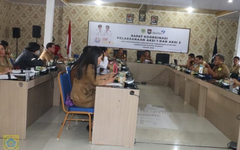 PIRNAS.COM | Pakpak Bharat – Dalam rangka pelaksanaan aksi konvergensi percepatan penurunan Stunting Kabupaten Pakpak Bharat 2023. BKKBN Kabupaten Pakpak Bharat melaksanakan rapat koordinasi pelaksanaan aksi 1 dan aksi 2 bertempat di ruang rapat Bappeda Kabupaten Pakpak Bharat, 28/2/2023.