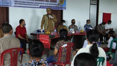 PIRNAS.COM | DAIRI – Bupati Dairi Dr. Eddy Keleng Ate Berutu bagi dokumen Administrasi Kependudukan kepada Warga Desa Tanjung Baringin 1 Kecamatan Sumbul, Selasa (03/11) bertempat di Kantor Desa Tanjung Baringin 1.