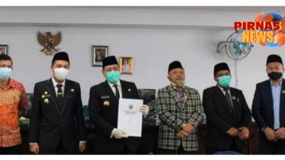 PIRNAS.COM | DAIRI – Dewan Perwakilan Rakyat Daerah (DPRD) Kabupaten Dairi menggelar Rapat Paripurna Penyampaian Rekomendasi atas Laporan Keterangan Pertanggungjawaban (LKPJ) Bupati Dairi Tahun Anggaran 2019, Jumat (5/6/20). Bertempat di ruang sidang DPRD Kabupaten Dairi, rekomendasi DPRD disampaikan oleh Sekretaris Panitia Khusus (Pansus) LKPJ, Juangga Silaban. Sidang penyampaian rekomendasi DPRD Kabupaten Dairi ini dihadiri langsung oleh Bupati Dairi Dr. Eddy Keleng Ate Berutu, Wakil Bupati Dairi Jimmy A.L Sihombing, SH, Ketua DPRD Sabam Sibarani, S.Sos, Wakil Ketua DRPD, Forkopimda, anggota DPRD, Sekda Drs. Leonardus Sihotang serta pimpinan OPD.