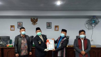 Selanjutnya Rancangan Peraturan Daerah tentang APBD Kabupaten Dairi Tahun Anggaran 2021 dan Nota Keuangan Rancangan Anggaran Pendapatan dan Belanja Daerah Kabupaten Dairi Tahun Anggaran 2021 kami serahkan kepada Dewan Yang Terhormat untuk dibahas bersama dan disepakati menjadi Peraturan Daerah tentang APBD Kabupaten Dairi Tahun Anggaran 2021,” pungkas Bupati Dairi Dr. Eddy Keleng Ate Berutu dalam penyampaian Nota Pengantar Keuangan dan menyerahkan Nota Pengantar Keuangan tersebut kepada Ketua DPRD Dairi dihadapan para Anggota DPRD Dairi.