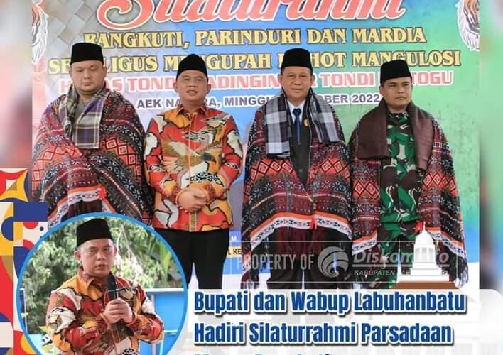 PIRNAS.COM | LABUHANBATU – Bupati Labuhanbatu dr. H. Erik Adtrada Ritonga, M.K.M. menghadiri acara Silaturahim Parsadaan Marga Rangkuti, Parinduri dan Mardia sekaligus upah-upah mengulosi Kapolres Labuhanbatu Anhar Arlia Rangkuti, SIK., Dandim 0209/LB Letkol Inf Muhammad Faizal Rangkuti, S.I.P.,M.I,P, dan Wakil Ketua DPRD Labuhanbatu H. Muhammad Arsyad Rangkuti di kediaman H. M. Arsyad Rangkuti, Dusun Pekan, Desa Pematang Seleng, Kecamatan Bilah Hulu, Minggu (9/10/2022).