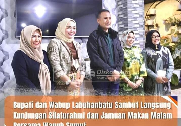 PIRNAS.COM | LABUHANBATU – Bupati Labuhanbatu dr. H. Erik Adtrada Ritonga, MKM., dan Wakil Bupati Labuhanbatu Hj. Ellya Rosa Siregar, S.Pd., MM., menyambut kunjungan silaturahmi sekaligus makan malam bersama Wakil Gubernur Sumatera Utara H. Musa Rajekshah, S.Sos., M.Hum., di Rumah Bupati, Padang Matinggi, Rantau Utara, Rabu (14/12/2022).