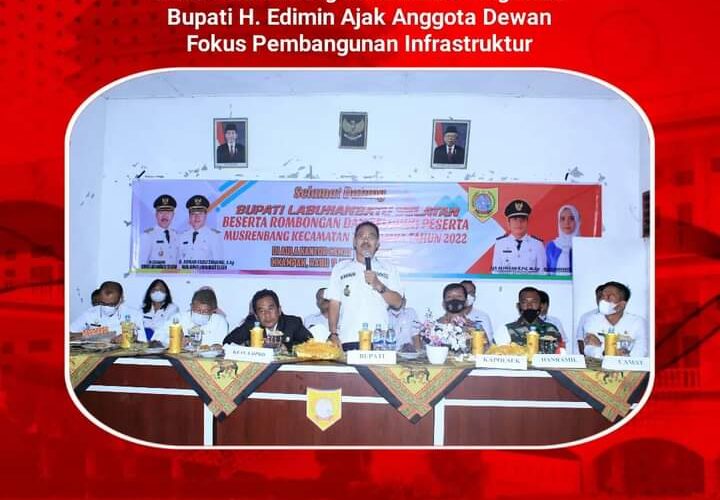 PIRNAS.COM | LABUSEL – Pembangunan infrastruktur jalan menjadi salah satu prioritas pemerintah Kabupaten Labuhanbatu Selatan. Hal tersebut disampaikan Bupati H. Edimin saat memberikan arahan dan bimbingan Musrenbang Kecamatan Torgamba tahun 2022.