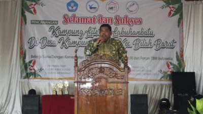 PIRNAS.COM | LABUHAN BATU – Bupati Labuhanbatu dr.H. Erik Adtrada Ritonga, M.K.M diwakili Asisten III Zaid Harahap, mencanangkan Desa Kampung Baru, Kecamatan Bilah Barat, Kabupaten Labuhanbatu, Sumut, sebagai Kampung Literasi, Kamis 25/11/2021.