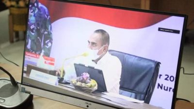 SUMATERANUSANTARA.COM | LABUHAN BATU – Bersama Forkopimda Provinsi Sumatera Utara, Bupati / Walikota serta Forkopimda Kabupaten / Kota Se-Sumatera Utara dan diikuti Panglima TNI beserta Kapolri, Bupati Labuhanbatu dr. H. Erik Adtrada Ritonga M.K.M, mengikuti rapat kordinasi Gugus Tugas Covid-19 Provinsi Sumatera Utara melalui video conference di Ruang Rapat Bupati, Rabu (03/11/2021).