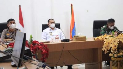 PIRNAS.COM | LABUHAN BATU – Bersama Forkopimda Provinsi Sumatera Utara, Bupati / Walikota serta Forkopimda Kabupaten / Kota Se-Sumatera Utara dan diikuti Panglima TNI beserta Kapolri, Bupati Labuhanbatu dr. H. Erik Adtrada Ritonga M.K.M, mengikuti rapat kordinasi Gugus Tugas Covid-19 Provinsi Sumatera Utara melalui video conference di Ruang Rapat Bupati, Rabu (03/11/2021).