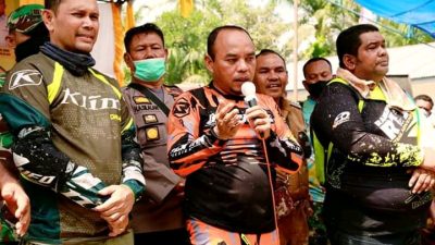 Bupati beserta rombongan datang dengan mengendarai sepeda motor Trail mengingat musim hujan dan kondisi jalan berlumpur.