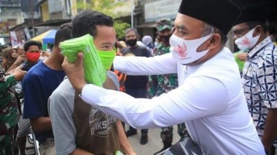 PIRNAS.COM | LABUHANBATU – 3000 lembar masker diberikan Bupati Labuhanbatu H. Andi Suhaimi Dalimunthe, ST., MT., kepada masyarakat yang melintas di sekitar Kota Negeri Lama Kecamatan Bilah Hilir, Jum’at (25/9/2020).
