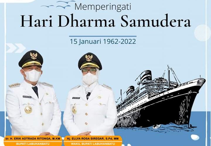 PIRNAS.COM | LABUHANBATU – Bupati Labuhanbatu dr Erik adtrada ritonga MKM dan wakil Bupati Labuhanbatu Hj. Elya Rosa siregar, mengucapkan selamat hari Dharma Samudera untuk Angkatan Laut, Kabupaten Labuhanbatu, Sumatera Utara, sabtu (15/1/2022).