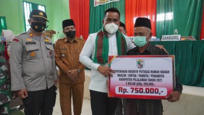 PIRNAS.COM | PELALAWAN – Bupati Pelalawan H. Zukri serahkan secara simbolis Sertipikat Pendaftaran Tanah Sistem Lengkap (PTSL) kepada masyarakat Kecamatan Bandar Petalangan. Pada kesempatan yang sama, Bupati H. Zukri memberikan bantuan untuk Imam Masjid, bilal, anak yatim yang ada di Kecamatan Bandar Petalangan. Kegiatan dilaksanakan di Gedung Serbaguna Penghulu Mudo Muhammad Syafei Selasa (18/1/2022).