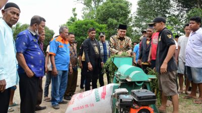 Kegiatan juga diisi dengan demontrasi mesin penggiling rumput untuk dijadikan pakan ternak dengan sistem permentasi.