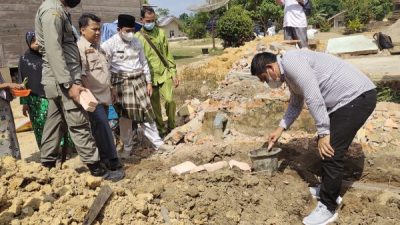 PIRNAS.COM | PELALAWAN – Camat Bandar Petalangan Mukhtarius, M.Pd hadiri peletakan batu pertama bantuan Bedah Rumah dari Dinas Sosial Aspirasi Anggota DPRD Kabupaten Pelalawan Dapil II Yose Indrawan, ST bagi masyarakat kurang mampu di Desa Lubuk Raja Kecamatan Bandar Petalangan pada Senin (9/8/2021). Peletakan batu pertama pembangunan bedah rumah di Desa Lubuk Raja Kecamatan Bandar Petalangan ini dihadiri oleh Anggota DPRD Kabupaten Pelalawan Dapil II Yose Indrawan, ST, Camat Bandar Petalangan Mukhtarius,M.Pd, Kepala Seksi Kesejahteraan Sosial Kantor camat Bandar Petalangan Misrinah, SE, Kepala Desa Lubuk Raja Eri Suparjan, S.Pd, Ketua BPD Milin, perwakilan dari Dinas Sosial yang diwakili oleh Tenaga Kesejahteraan Sosial (TKSK) Bandar Petalangan Mistar Naini dan penerima manfaat.