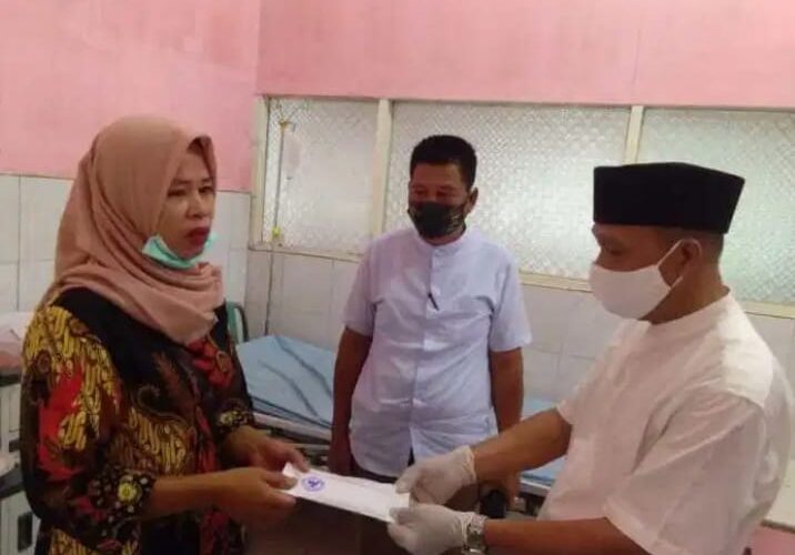 PIRNAS.COM | LABUHANBATU – Camat Rantau Utara, Turing Ritonga bersama Baznas kabupaten Labuhanbatu memberikan bantuan untuk warga yang diduga menderita tumor, Sabtu, (9/5/2020).