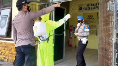 Home » Daerah » Cegah Penularan Covid-19, Polsek Kampar Kiri Hilir Rutin Lakukan Desinfeksi di Lingkungan Mako Dan Asrama