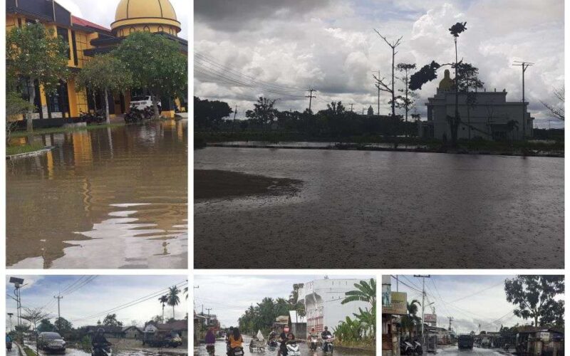 CURAH HUJAN TINGGI SEBAHAGIAN WILAYAH DIIBUKOTA ROHIL MENGALAMI BANJIR