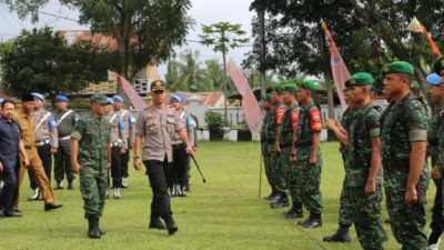 Dipimpin langsung oleh Dandim 0209/lb Letkol Inf Santoso, Kapolres Labuhanbatu AKBP Agus Darojat Sik. MH, dan diikuti Asisten Pemerintahan Sekdakab Labuhanbatu Drs. H. Sarimpunan Ritonga M.Pd, apel di awali dengan pemeriksaan barisan pasukan dan bimbingan arahan.
