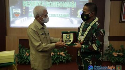 PIRNAS.COM | ASAHAN – Dandim 0208/Asahan Letkol Inf Sri Marantika Beruh, S. Sos bersama Bupati Asahan H. Surya, BSc, Bupati Batubara, Walikota Tanjung Balai, Ketua DPRD Kabupaten Asahan, Ketua DPRD Tanjung Balai, Wakil Ketua DPRD Batu Bara, Kapolres Batu Bara dan Kapolres Tanjung Balai sambut hangat kedatangan Pangdam I Bukit Barisan (BB) Mayjen TNI Hassanudin beserta istri dan rombongan melakukan Kunjungan Kerja (Kunker) di Markas Kodim (Makodim) 0208/Asahan, Senin (11/01/2021).