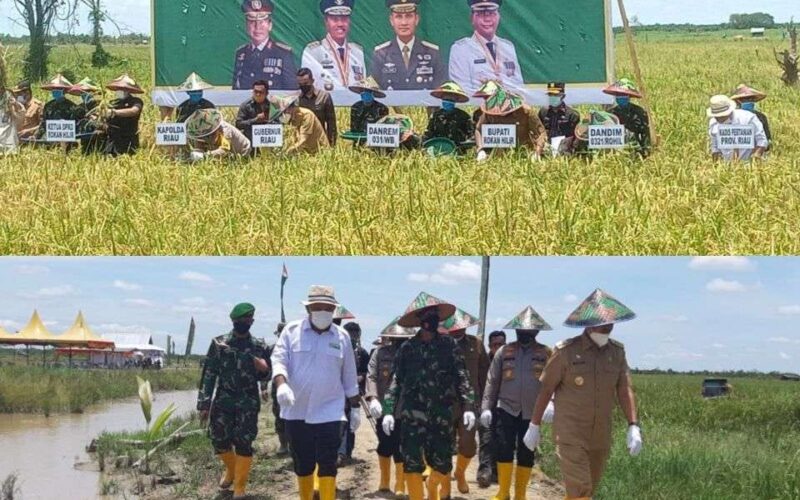 Kunjungan Gubernur Riau H. Syamsuar, Danrem 031 Wirabima Brigjend TNI M. Syech Ismed, SE, M.Han beserta Kapolda Riau Irjen Pol Agung Setya Imam Effendi SH, SIK, M.Si dalam Rangka Panen Raya Padi dan Buah Semangka tepatnya di lahan ketahanan pangan Kodim 0321/Rohil yang berada di Kepenghuluan Rokan Baru Pesisir Kecamatan Pekaitan Kabupaten Rokan Hilir.