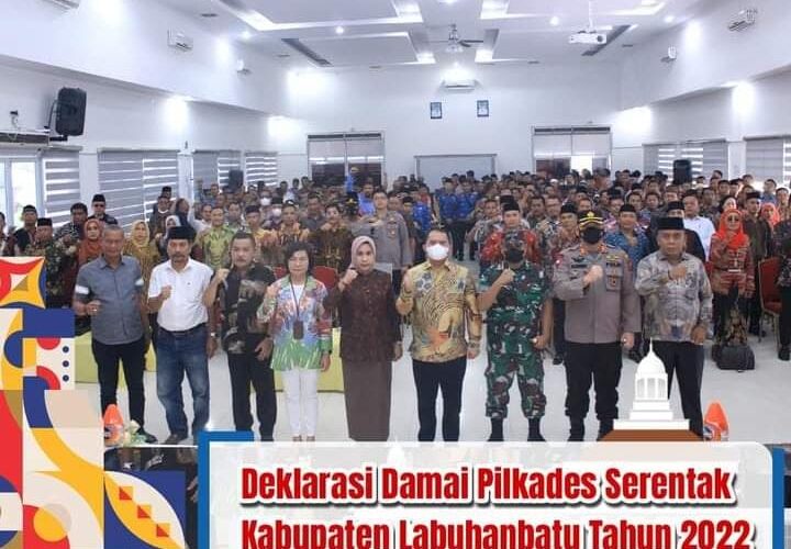 PIRNAS.COM | LABUHANBATU – Bupati Labuhanbatu dr.H.Erik Adtrada Ritonga,MKM bersama Forkompimda Kabupaten Labuhanbatu menghadiri deklarasi damai pemilihan kepala desa (Pilkades) serentak Kabupaten Labuhanbatu Tahun 2022 yang di gelar di Ruang Data dan Karya, Sabtu (01/10/2022).
