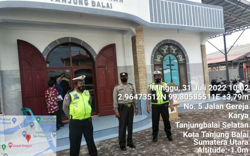 PIRNAS.COM | TANJUNGBALAI – Demi kenyamana masyarakat Beribadah Minggu Personil Lalu Lintas Polres Tanjungbalai melaksanakan arus lalu lintas didepan lokasi Gereja. Minggu 31 Juli 2022, sekitar Pukul 09.30 Wib di beberapa lokasi diwilayah hukum Polres TanjungbaIai.