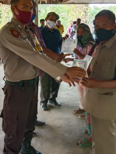 Mardippu Simatupang Kepala Desa Sarmanauli menghimbau dan memberikan arahan kepada warganya agar bantuan yang diterima dipergunakan dengan sebaik baiknya.