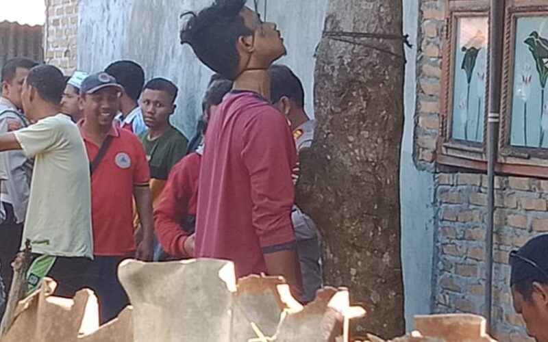 Berawal seorang saksi mata, Anjanah mendengar tetangganya menyebut “INALILLAHI” dan terkejut sambil menutup jendela dengan keras karena penasaran saksi keluar melihat ke samping rumah sebelah kanan dan melihat seorang Laki-laki tergantung di pohon mangga dengan seutas tali nilon warna biru, kemudian melihat hal tersebut dan saksi berteriak meminta tolong dan banyak warga berdatangan.