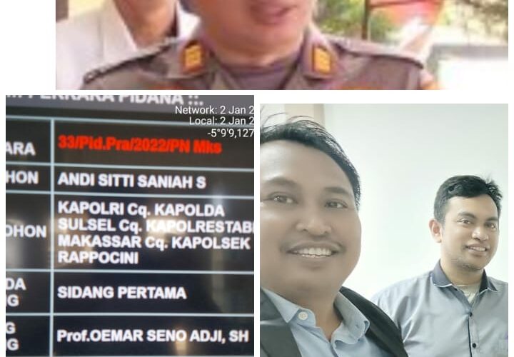 PIRNAS.COM | MAKASAR – Gugatan peraperadilan dengan nomor register perkara 33/Pld.Pra/2022/PN.Mks yang berlangsung pada senin 2 Januari 2023 ,sekitar pukul 11.11.40 wita lalu, Pengacara ibu Siti Muh Shirul Haq.SH,sangat menyesalkan atas prilaku institusi penegak hukum Polsek Rappicini Sulawesi selatan, “Dimana tidak menghadiri pemanggilan di pengadilan negri kota makassar.