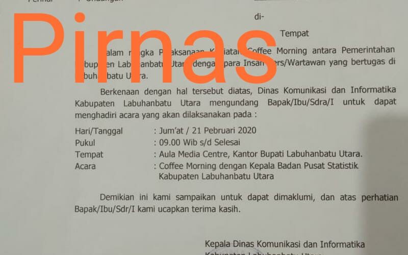 PIRNAS.COM & PIRNAS.ORG | LABURA – Dinas Komunikasi dan Informasi Kabupaten Labuhanbatu Utara, Sumut mengundang Wartawan /insan pres sesuai dengan Surat Nomor: 005/440/Diskominfo/ 2020 Pada tanggal 19 Februari 2020.