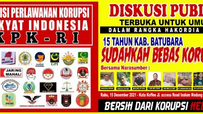 PIRNAS.COM | BATU BARA – Puluhan Penggiat Sosial dan Aktivis Anti Korupsi gelar diskusi publik terbuka memperingati hari jadi ke 15 Kabupaten Batu Bara dan hari Antikorupsi Dunia (HAKORDIA) mengambil thema besar 15 Tahun Kabupaten Batu Bata apakah sudah bebas Korupsi? Rabu 15/12/2021.