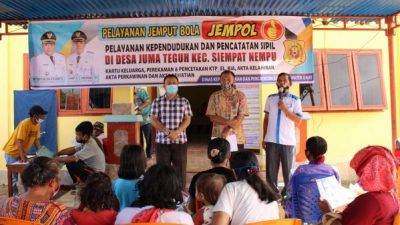 PIRNAS.COM | DAIRI – Dinas Kependudukan dan Pencatatan Sipil Kabupaten Dairi melakukan Pelayanan Jemput Bola “Jempol” di Juma Teguh Kecamatan Siempat Nempu, Kamis (3/12) yang mengambil tempat di Kantor Desa Juma Teguh.