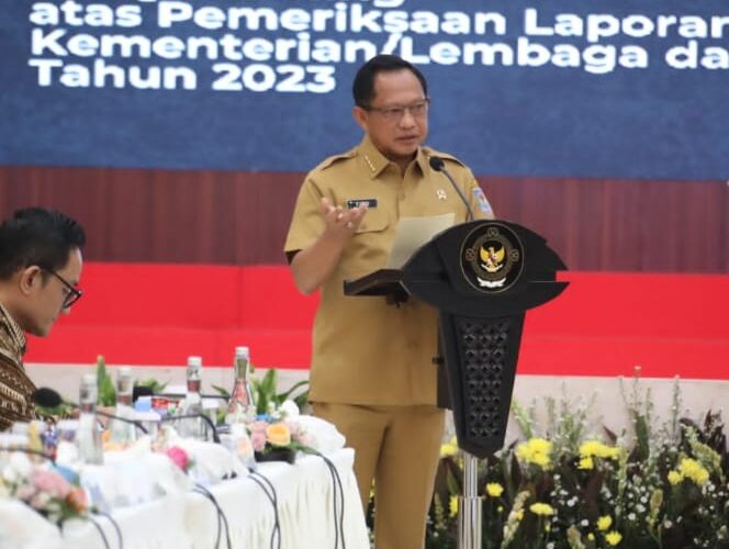 Hal itu diungkapkan Mendagri pada acara Entry Meeting atas Pemeriksaan Laporan Keuangan Kementerian/Lembaga (K/L) dan Pemerintah Daerah (Pemda) Tahun 2023 di Ruang Auditorium Gedung Tower BPK RI, Jakarta, Selasa (23/1/2024).