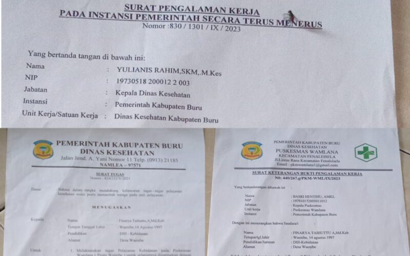 Adsmistrasi/persyaratan yang digunakan dalam proses mengikuti CASN tenaga kesehatan di Kabupaten Buru tidak palsu dan ditandatangani olèh Kepala Dinas dan Kepala Puskesmas (Kapus) Wamlana.