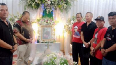 Sekretaris Jendral (Sekjend) FJP, Selamat Purba didampingi Wakil Ketua FJP Relikhius Harefa hadir melayat ke rumah duka di jln. Karya No. 35 Sekip Medan.