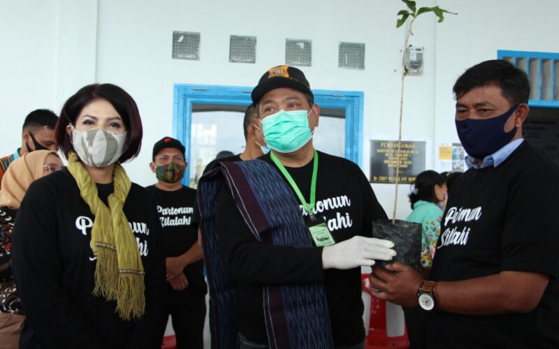 PIRNAS.COM | DAIRI – Bupati Dairi, Dr Eddy Keleng Ate Berutu didampingi oleh Ketua Dewan Kerajinan Daerah (Dekranasda) Kabupaten Dairi, Ny. Romy Mariani Eddy Berutu menggelar kegiatan bakti sosial berupa penanaman pohon dalam acara yang bertajuk ‘Gerakan Dairi Hijau’ di Kecamatan Silahisabungan, Jumat (24/07/2020).