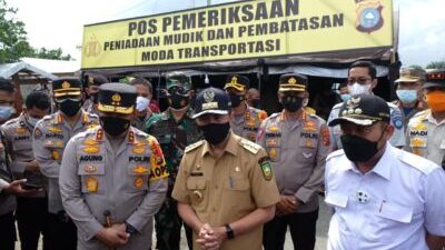 PIRNAS.COM | RIAU – Gubernur Riau (Gubri) Syamsuar dan Forum Koordinasi Pimpinan Daerah (Forkopimda) Provinsi Riau melakukan peninjauan Pos Penyekatan mudik lebaran tahun 1442 Hijriah yang berada di Perbatasan Provinsi Riau-Sumatera Barat, Kamis (6/5/2021).