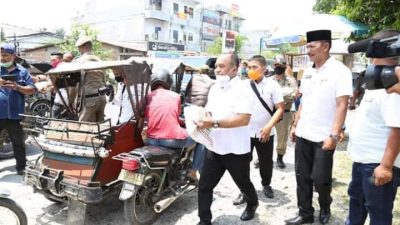PIRNAS.COM & PIRNAS.ORG | LABUHAN BATU – Bupati Labuhan Batu, H. ANDI SUHAIMI DALIMUNTHE, ST, MT, bagikan sembako kepada sejumlah abang becak bermotor (BETOR), Rabu (15/04/2020).