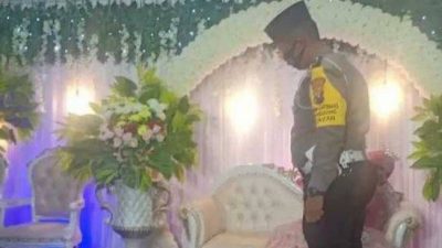 Heboh, Polisi Naik Ke Pelaminan Beri Hukuman Push-up Ke Pengantin Pria