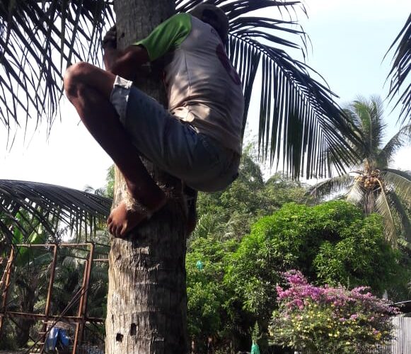 PIRNAS.ORG & PIRNAS .COM | ACEH TAMIANG – Di zaman sekarang ini yang penuh hiruk pikuk toh masih ada seorang ayah yang meraih hidup seharinya dengan memanjat kelapa untuk menghidupi keluarga sehingga luluskan anak anaknya jadi Sarjana .