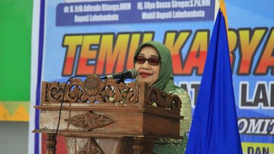 PIRNAS.COM | LABUHANBATU – Selamat melaksanakan temu karya, selamat berdiskusi untuk hasil yang baik” ucap Wakil Bupati Labuhan Batu Hj. Ellya Rosa Siregar, S.Pd. MM. saat menghadiri kegiatan Temu Karya Karang Taruna Kabupaten Labuhan Batu 2021 di Ruang Data dan Karya Kantor Bupati Labuhan Batu, Rantau Selatan, Kamis 23 Desember 2021.