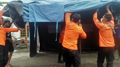 Untuk sementara 4 tenda dari Kementrian Sosial dipasang untuk antisipasi adanya longsong susulan.