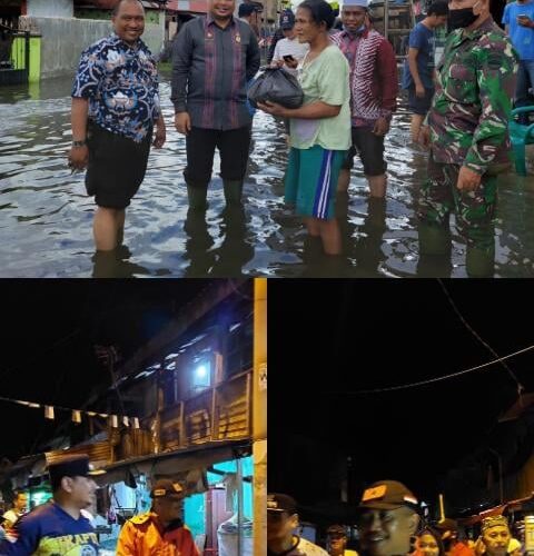 PIRNAS.COM | MEDAN – Kepala Dinas (Kadis) Badan Penanggulangan Bencana Daerah (BPBD) Kota Medan Muhammad Husni Kaban, bersama Camat Medan Belawan Subhan Fajri Harahap, S.STP, MAP, Sekcam Robby Kurniawan, SE, MM, Komandan Koramil 09 Belawan Kapten Amran, Tokoh Agama Ustadz T. Zakaria Yusuf serta Tokoh dan Aktivis Muda Sosial Kota Medan sambangi warga masyarakat Belawan yang terdampak Banjir ROB.