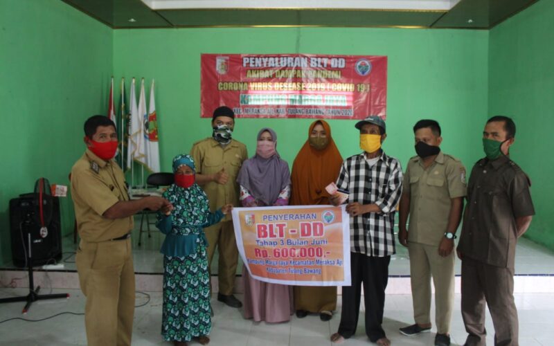 PIRNAS.COM | TULANG BAWANG – Tetkait Bantuan Langsung Tunai Dana Desa, Kampung Marga Jaya, Kecamatan Meraksa Aji, Kabupaten Tulang Bawang. P.J Kepala Kampung Marga Jaya dan Segenap Apratur Kampung menyalurkan BLT DD tahap ke 3, pada Senin (13/7/2020) Di aula balai Kampung Marga Jaya.