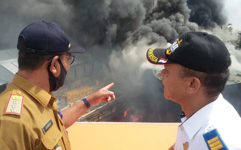 PIRNAS.COM | MEDAN UTARA – Terjadi suara ledakan keras yang terdengar akibat meledaknya Kapal tanker MT Jag Leela Caglela yang terbakar saat diperbaiki di galangan kapal PT Waruna Shipyard Indonesia Pelabuhan Belawan, Senin (11/05/2020). sekitar Pukul 08.48 WIB.