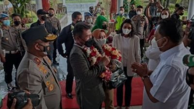 PIRNAS.COM | MANADO – Kapolda Sulut yang baru resmi dilantik oleh Kapolri RI Jenderal Sulistiyo Sigit Prabowo selang dua hari setelah resmi dilantik Kapolri menjadi Kapolda Sulawesi Utara, Irjen Pol Mulyatno bersama Ketua Bhayangkari Sulut Ny. Mila Mulyatno tiba di Manado, Jumat (12/11/2021) sekitar pukul 14.45 Wita.