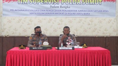 PIRNAS.COM | BATU BARA – Kapolres Batu Bara AKBP,IKHWAN,SH,MH, Kedatangan Tim Supervisi Polda Sumut dalam rangka pelaksanaan evaluasi dan pengecekan penjabaran jukrah dari satuan atas serta pelaksanaan Waskat di Jajaran Polda Sumut di Polres Batu Bara Rabu (17/11/2021).