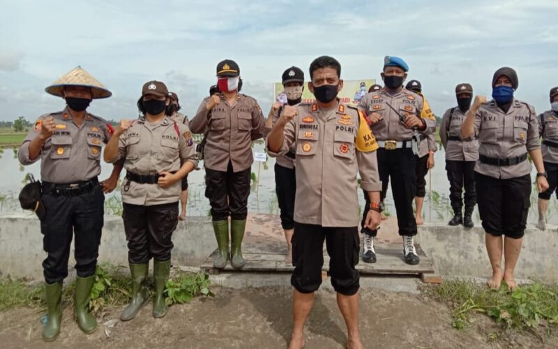 Kapolres dan Pemkab Asahan Lakukan Gerakan Tanam Padi di Pasar 6 Panca Arga
