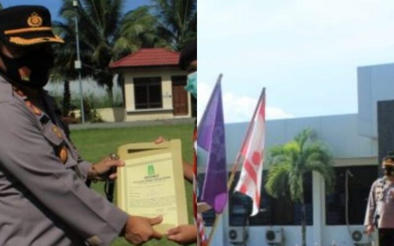 Selepas acara pelantikan Kapolres Kotamobagu juga turut memberikan satu set tenda yang sudah di cap logo “Saka Bhayangkara Polres Kotamobagu”