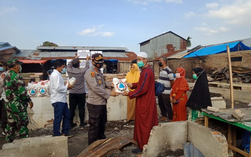 Home » Daerah » KAPOLRES ROHIL BERIKAN BANTUAN KEMANUSIAAN BENCANA KEBAKARAN PASAR TRADISIONAL PAJAK LAMA BAGAN BATU